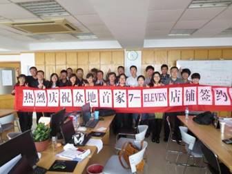 2012年5月18日是众地7-eleven项目筹备组值得庆贺的日子,在前期多天实地调研及各个相关部门的共同努力下,众地首家店铺成功签约,这标志着众地7-eleven项目成功落地的开始,为7-eleven后续项目的展开奠定了基础。在庆祝会上公司金总、林总对下一步工作分别做了重要指示,众地7-eleven项目筹备组全体成员,将按照领导指示,并依据年度预订计划相互协作共同努力,为达成目标、构建7-eleven创新生活新形态不懈努力奋斗。