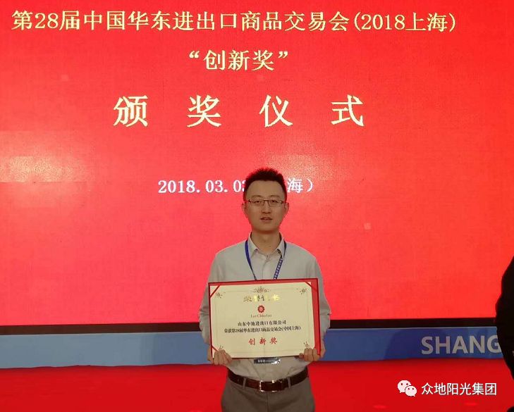 第28届中国华东进出口商品交易会,山东中地进出口有限公司再次获得“创新奖”,这是公司自第23届华交会以来,连续六届获此殊荣。