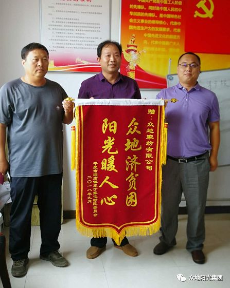 九月,中秋月圆,阖家团聚!14日,山东众邸便利生活有限公司董事长徐增森,众地家纺有限公司总经理赵国亮,众地阳光集团有限公司资金管理部总监田业明等,携手青岛市农行市南第三支行及其贵宾客户,在青岛市金融办孙忠贤处长和市南三支行孙鹏行长的带领下,来到平度市旧店镇东于家屯村进行了扶贫济困捐赠活动。