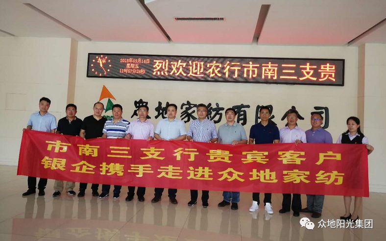 枝头喜鹊叫,缘有贵宾到。9月14日青岛农业银行市南三支行邀其贵宾客户组团到访众地家纺有限公司,贵宾们参观了我们的直属工厂、物流搭配中心和展厅。我们自主开发的产品大大的吸引了贵宾们的眼球,对我们的产品提出了很多好的建议,大家对家居用品软硬装饰产品、养老产品进行了多维度的交流,对功能性、流行趋势和行业发展交流看法!
