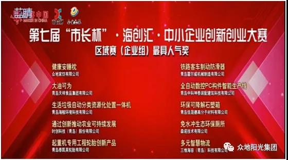 众地家纺有限公司“健康安睡枕”项目,在参加第七届“市长杯”·海创汇·中小企业创新创业大赛区域赛(企业组)“最具人气奖”评选中,得到了大众消费客户等社会各界的关注和青睐,最终在全市76个优秀项目中排名第一。本项目产品较高的应用广泛度再次在消费市场上得到印证。