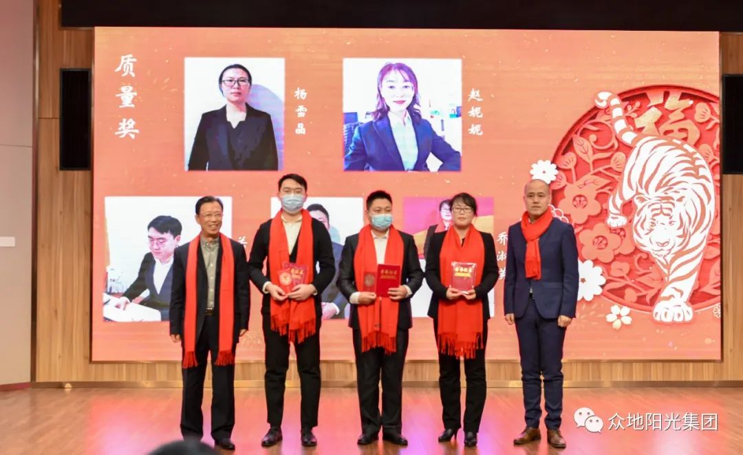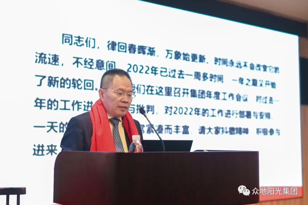1月12日上午9时,众地阳光集团2022年度经营工作会暨2021年度先进表彰会正式召开。集团董事长王文正出席并发表了题为“拼搏奋进、增量提质,敢胜善胜、共赢共生,以组织能力的确定性应对经营环境的不确定性。”的2022年度工作报告,报告对2021年集团下属各公司在经营管理方面存在的突出问题进行了总结,优化了集团的经营方针,下达了2022年的经营目标,对2022年的重点工作进行了布署。