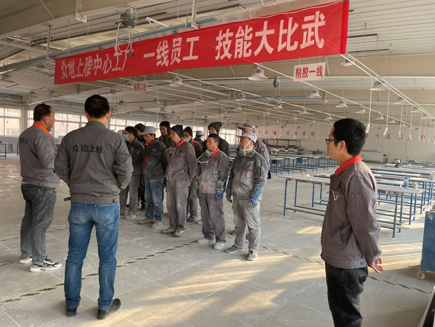 为培养更多优秀的一线技能人才,为实现作业岗位上精益求精的制造精神,鼓励大家争先创优的工作态度,以集团“建设学习型团队”为指导思想,众地上雅制造部于2022年2月25日在人造石生产车间组织了“一线员工技能大比武”的技能比赛。