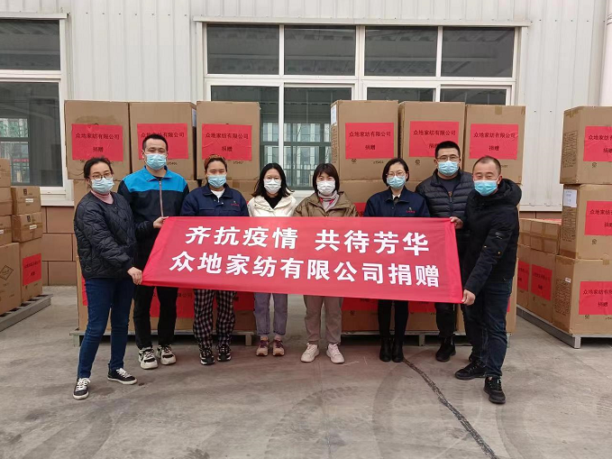 从武汉疫情,到莱西疫情,众地家纺先后两次捐款、捐物,从集团领导到家纺公司的员工都积极投身物资调配与加班生产中,时刻彰显出公司社会责任感担当,众志成城,战“疫”必胜!