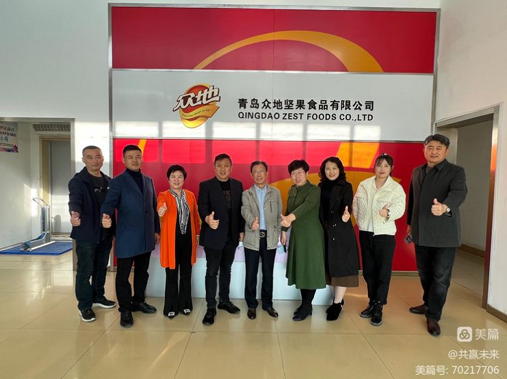 11月18日上午,平度市企业家联盟“访会员、促发展”活动走进青岛众地坚果食品有限公司。协会秘书长张福财、执行秘书长张淑香、副会长于钦城以及部分企业家参加了此次走访活动。众地坚果董事长孙永伦对大家的莅临表示欢迎。众地坚果副总经理郑明刚介绍了公司业务以及运营情况。