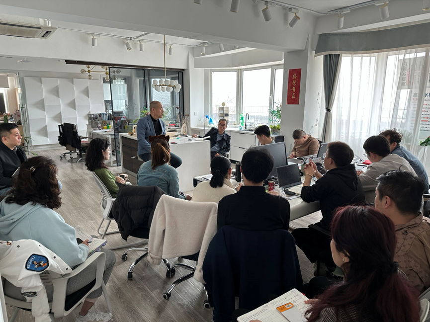 近日,众雅公司总经理李珍江,副总经理申明乐参加了青岛销售部门的晨会。会上每个人做了昨日工作的汇报和今日工作计划的发布,李总详细听取了每个人的发言并提出了中肯的建议。