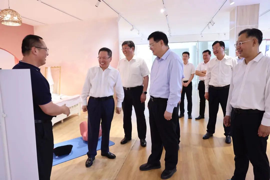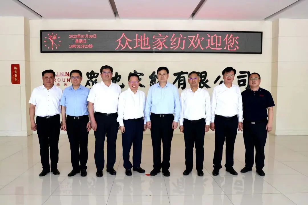 2023年7月9日上午,青岛市市委副书记、市长赵豪志率市政府秘书长李虎成、市工业和信息化局局长刘大川、平度市委书记赵兴绩、平度市长张宏业、平度市委常委市委办公室主任宋振祥一行莅临众地家纺有限公司进行工作调研,众地阳光集团有限公司董事长王文正、众地家纺有限公司总经理赵国亮陪同调研。