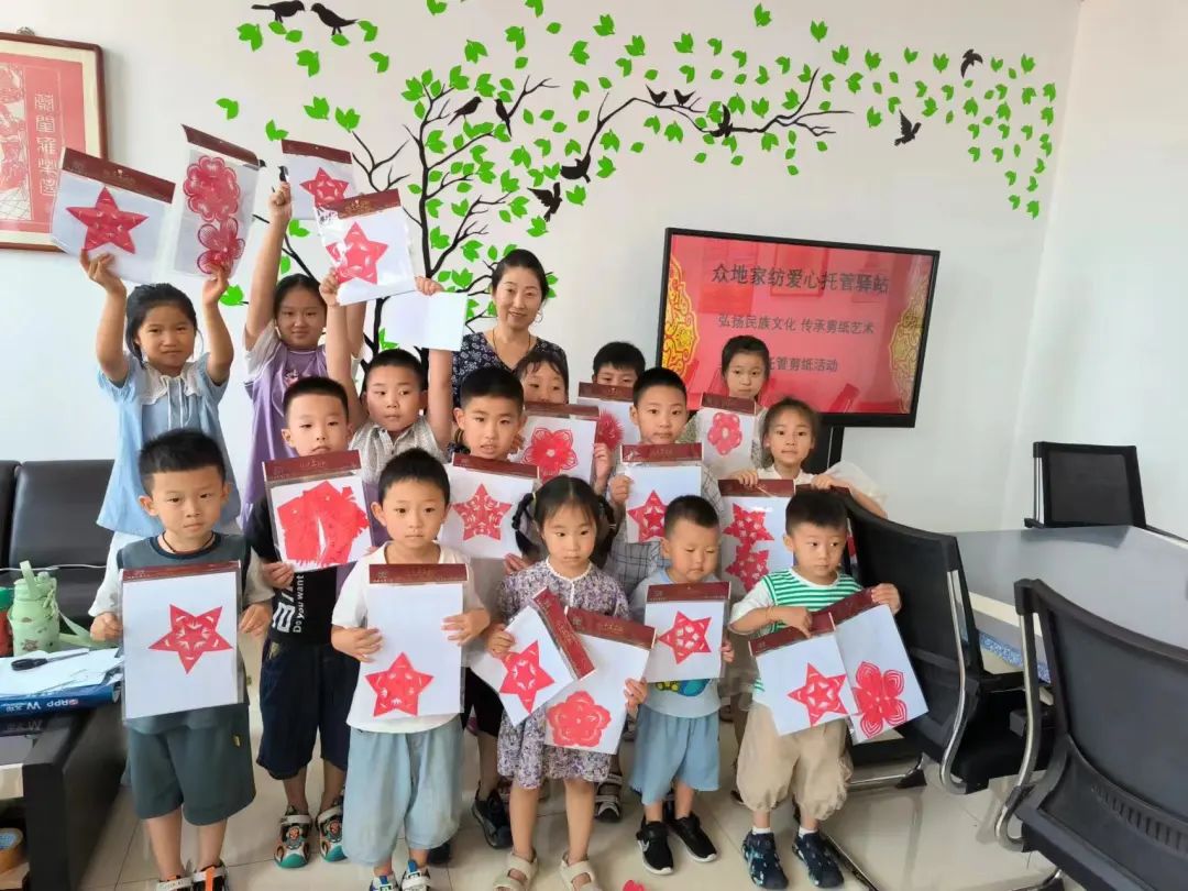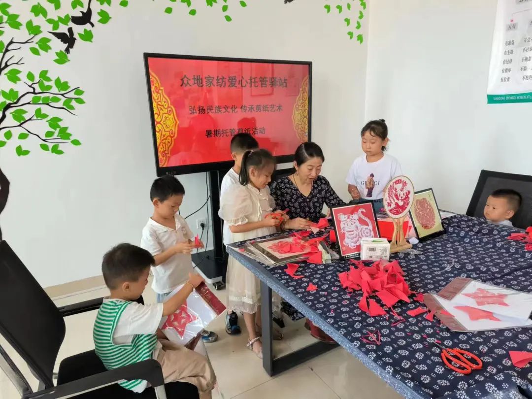2023年8月5日,为进一步培养托管班小学生对非遗文化的传承意识,众地家纺有限公司工会邀请了平度市总工会聘请的公益老师郑峰雷为托管班的孩子们上了一趟剪纸课。郑峰雷老师是平度市广州路小学美术教师,青岛市剪纸十佳传承人、“平度剪纸”市级代表性传承人、平度市民间文艺家协会副主席,平度市社会新阶层人士联谊会理事;非常感谢郑老师利用假期时间自备工具和材料为我们提供公益服务。