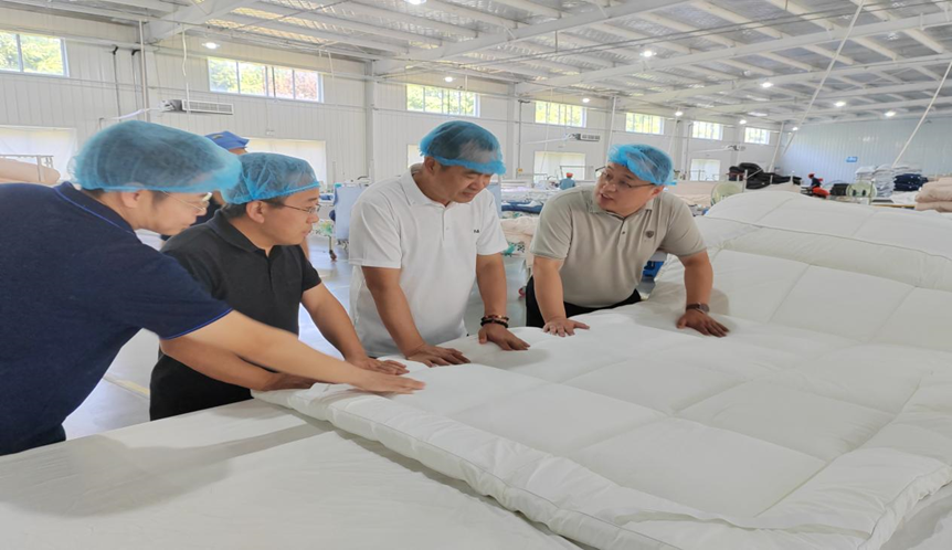 张迎增执行会长一行相继参观了公司被褥、填充产品自动化生产线和产品体验中心,赵国亮总经理介绍了近年来在打造数字化制造现场做出的努力及取得的成效,公司自2020年至2022年已连续三年实施了青岛市综合技改项目,同时,立足于产品应用场景和客户需求,聚焦研发创新助眠产品,向消费者提供“科技、时尚、绿色”多元素融合的产品体验。